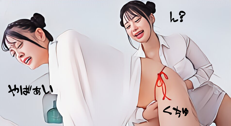 四つん這いになったるいちゃんは、背後からのましろちゃんの愛撫に、「やばぁい」と言い体をビクン。