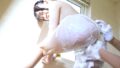 さきちゃんのお尻に、白い液体がどばどばとかけられます。