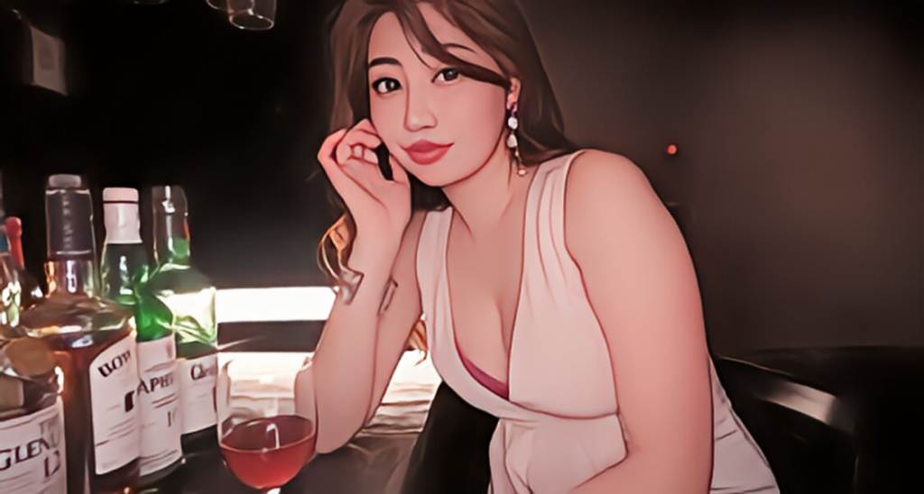 最初のシーンは、みほちゃんのホステスさん姿から始まります。