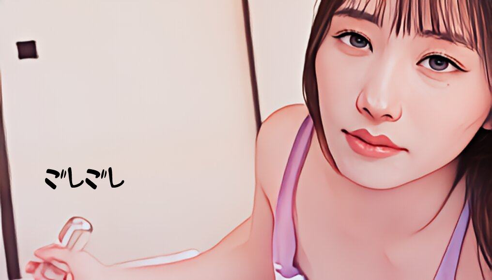 梅ちゃんは、胸の谷間をちらつかせながら、手コキを始めてしまいます。