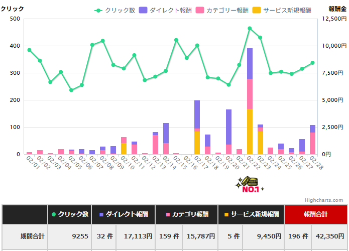 不調だった先月よりもさらにダウンし、今月は42,350円でした。