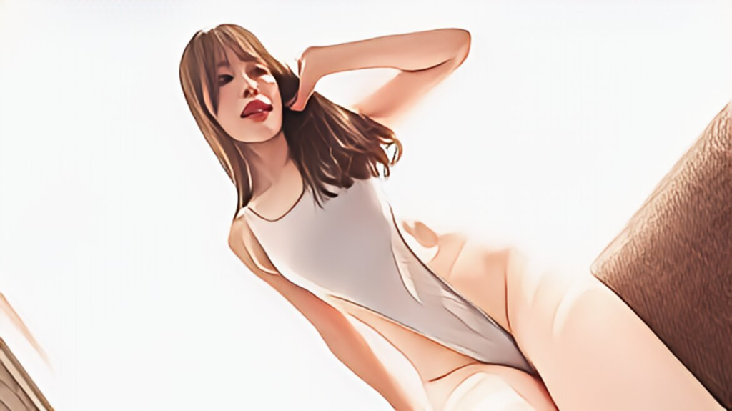 最初はタイトな水着姿で現れます。